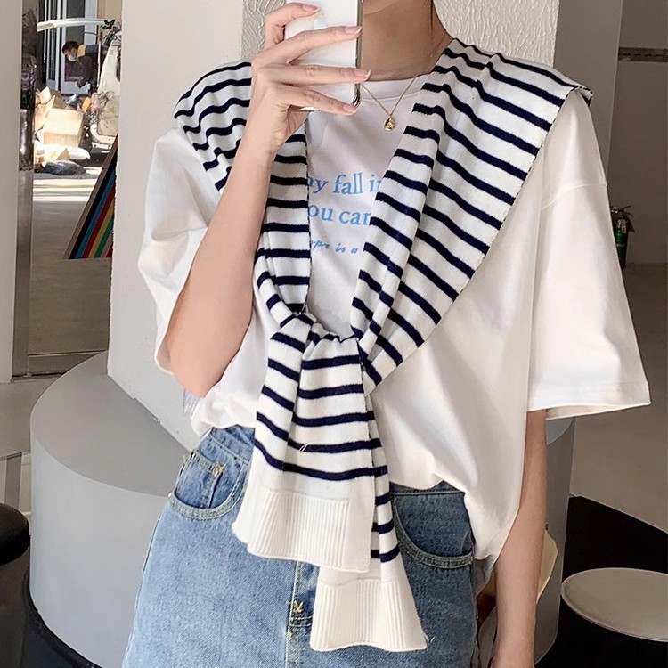 高級感のある新作のネットレッドファッションに合わせて、女性の春夏の外にシャツの薄いストライプの肩のマントを合わせます。