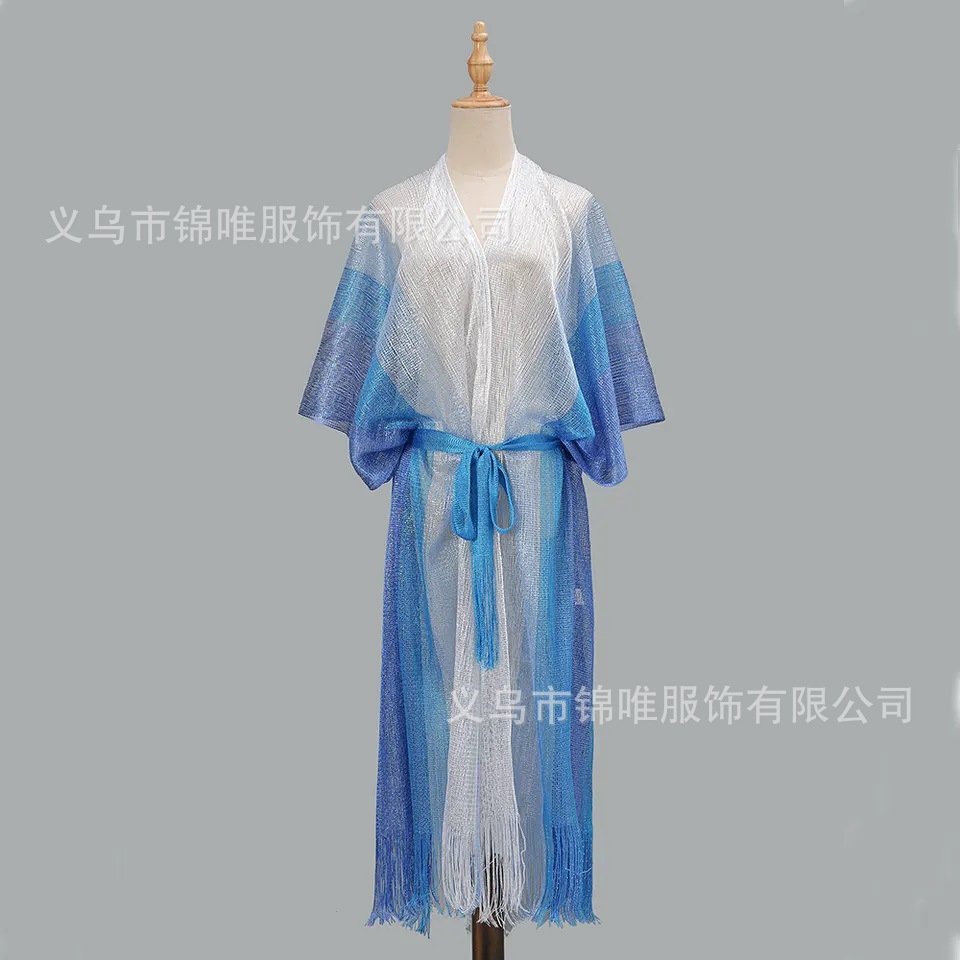 欧米で人気の3色展開ポリエステル人造繊維ニットショールベルト レディース リゾート日焼け止めショール
