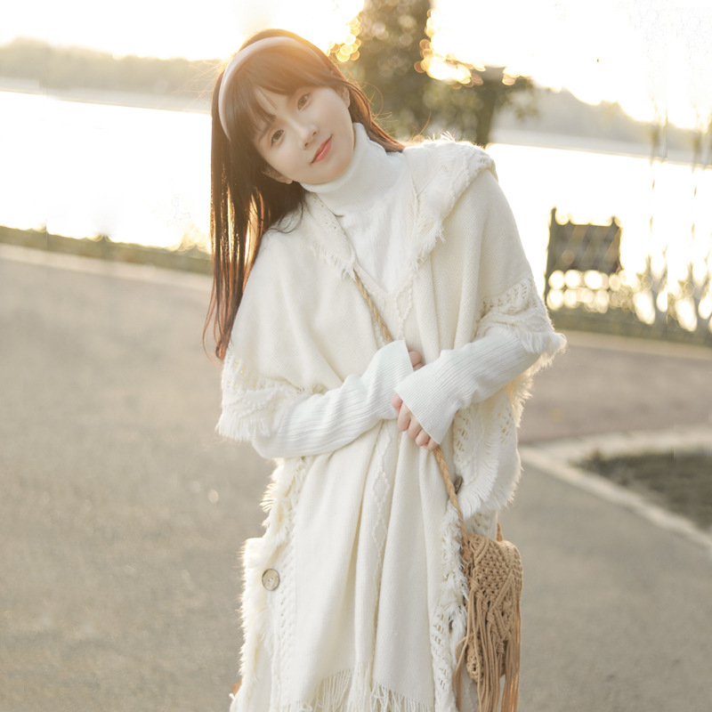 森系ストールボヘミアン流蘇セーターニット新疆草原旅行マント帽子マフラー