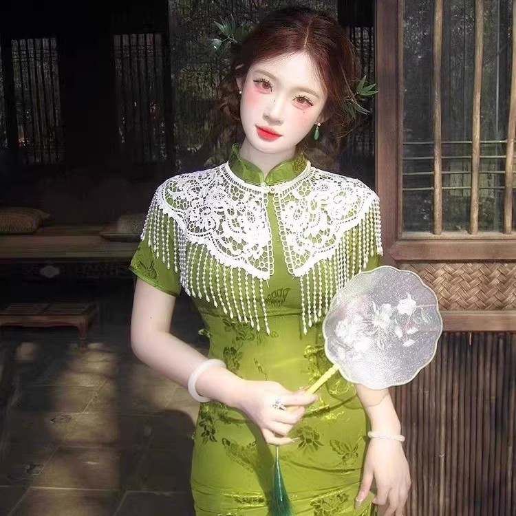 チャイナドレス雲肩新中国風パールタッセルショールチョッキ中国風漢服襟重工業レトロレース