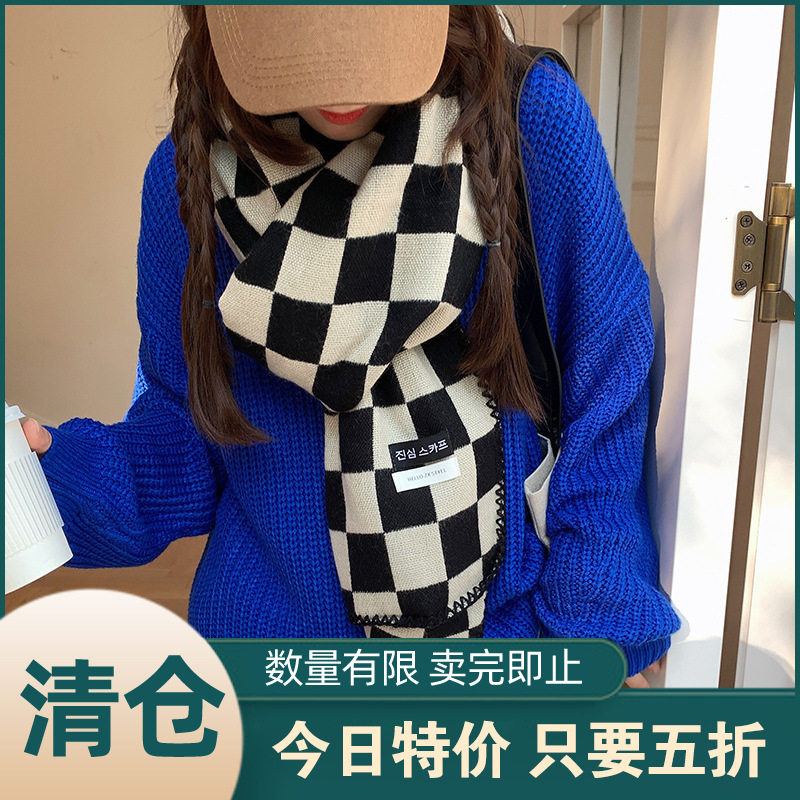 マフラー日本系秋冬男女二重盤旗格子保温insネット赤爆金学生マフラー誕生日プレゼント