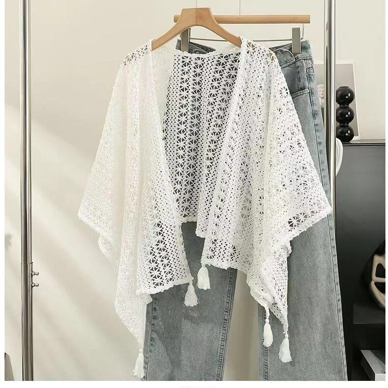 民族風の純色の透かし編みの大きいマントは外に飾られています。