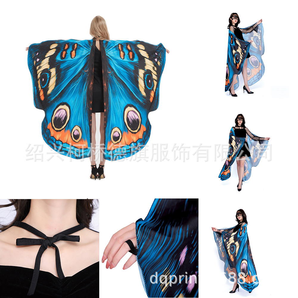国境を越えたハロウィーンの新製品子供蝶マントデジタルプリントグラデーションカラーマントの外に翼を着ている