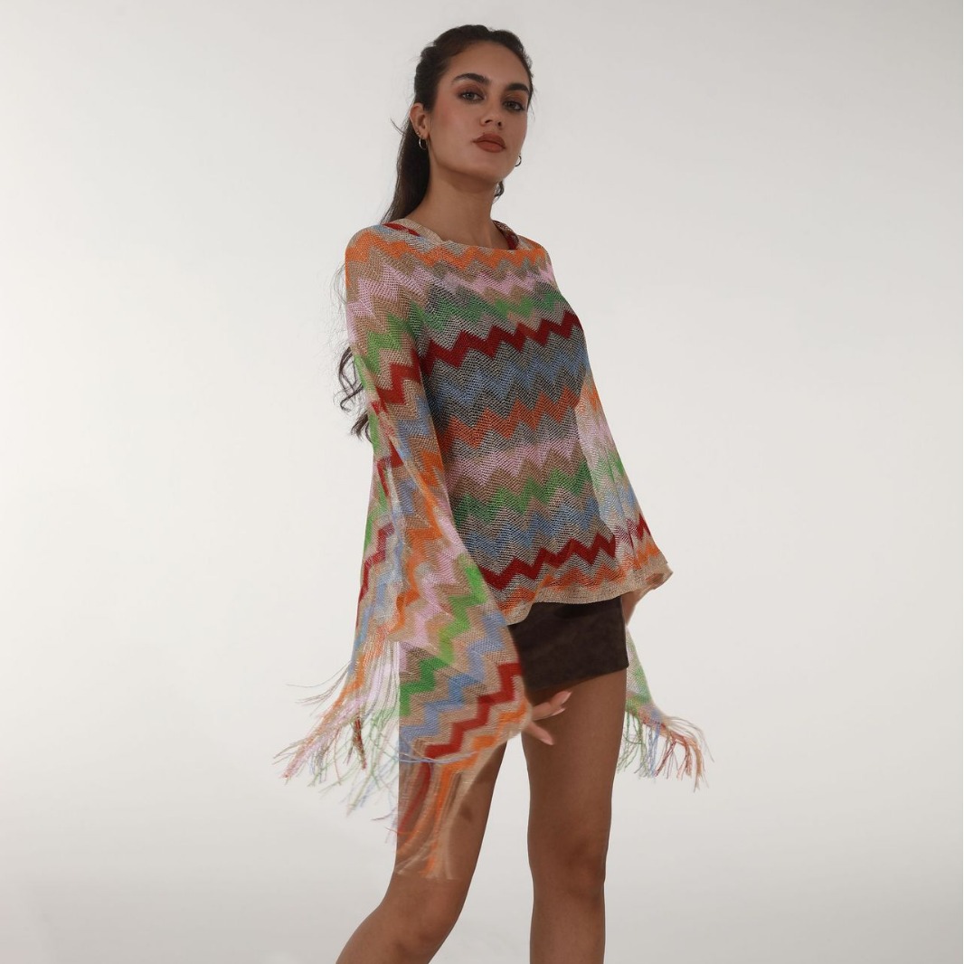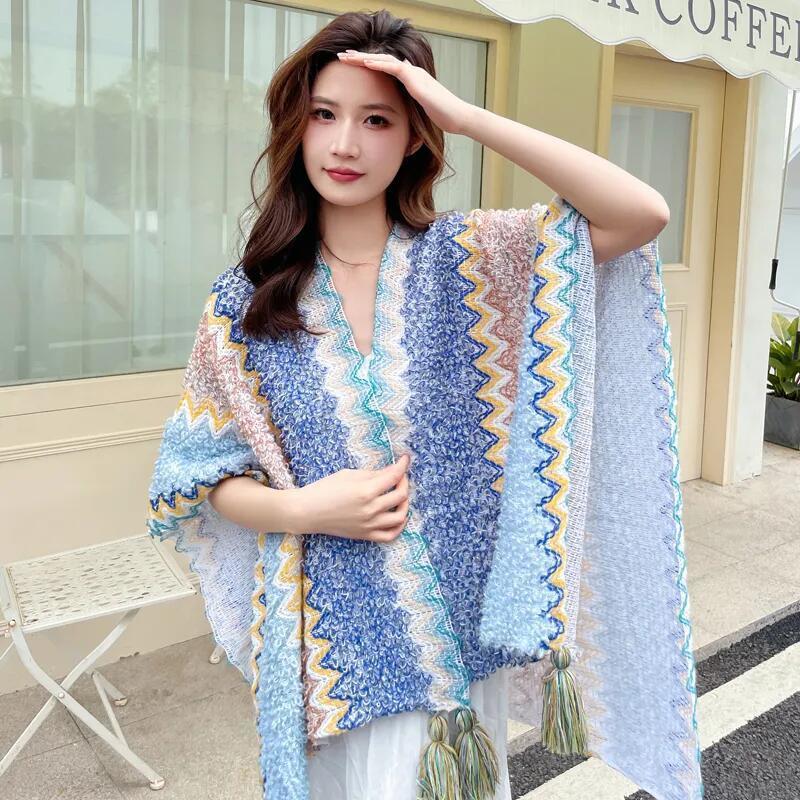 2024国境を越えて起爆した女性のニットカラーのマントは、日焼け止めビーチタオルの春夏モデルを着ています