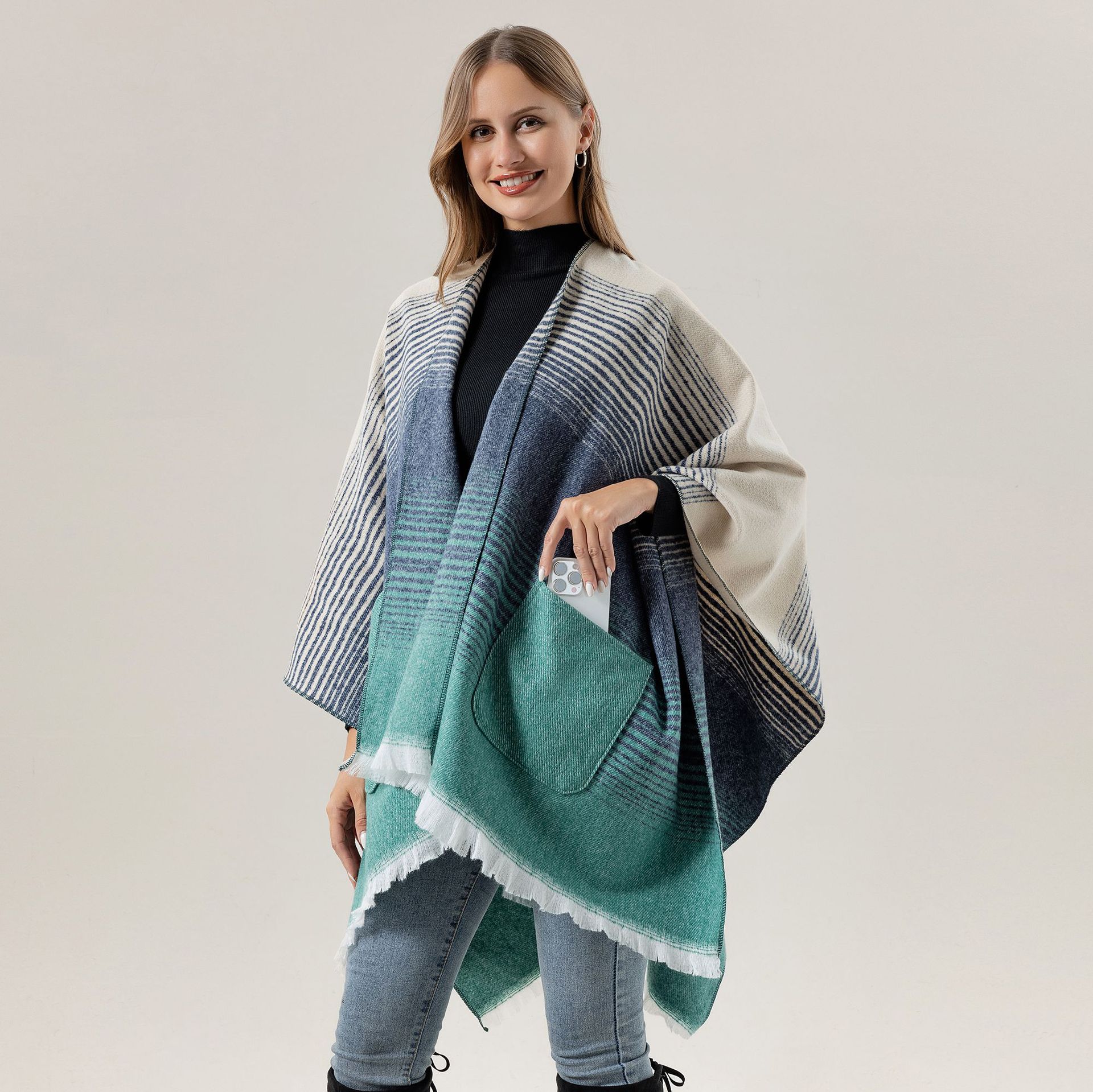 国境を越えた欧米のファッションストール夏の高級感はカシミヤのフォークマントの新しいグラデーションポケットの大きなストールに似ている