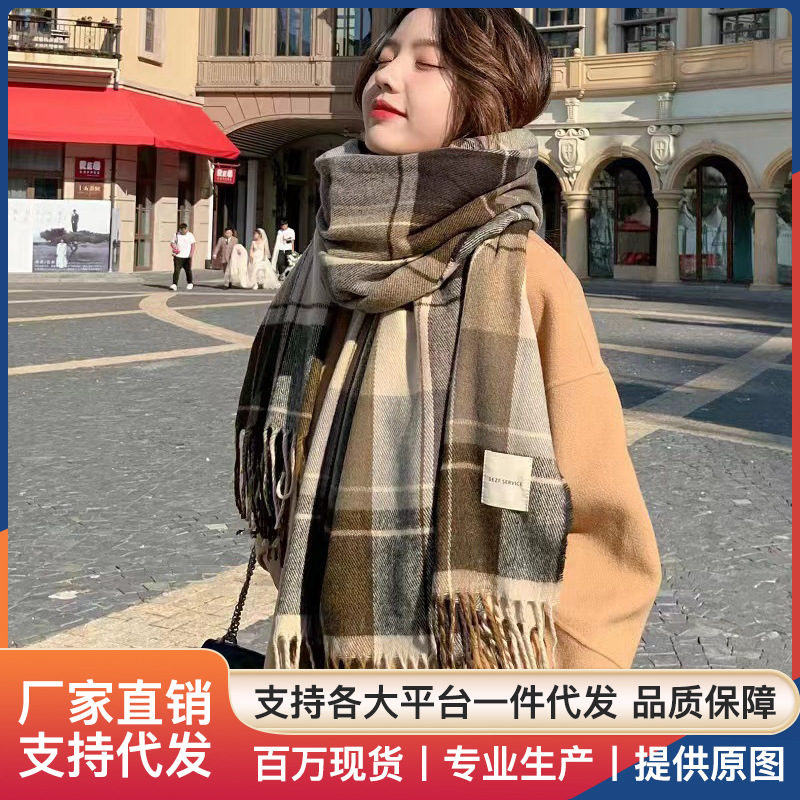 マフラーの女性の冬の高級感の虞書欣の同じタイプの格子のストールのカップルの百合の保温の高い顔の値は白い学生を現します。