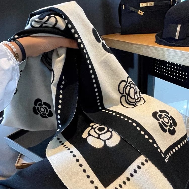 ツバキの花の両面のマフラーのストールはカシミヤの小さい香風の秋冬の保温のマフラーの高級な白黒の百合のマフラーに似せます。