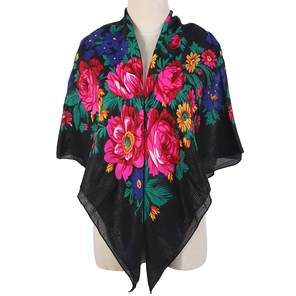 新疆ロシア風エスニックスタイルプリントスクエアスカーフゴールドシルク旅行日焼け止めショールフラワーバンズスカーフ