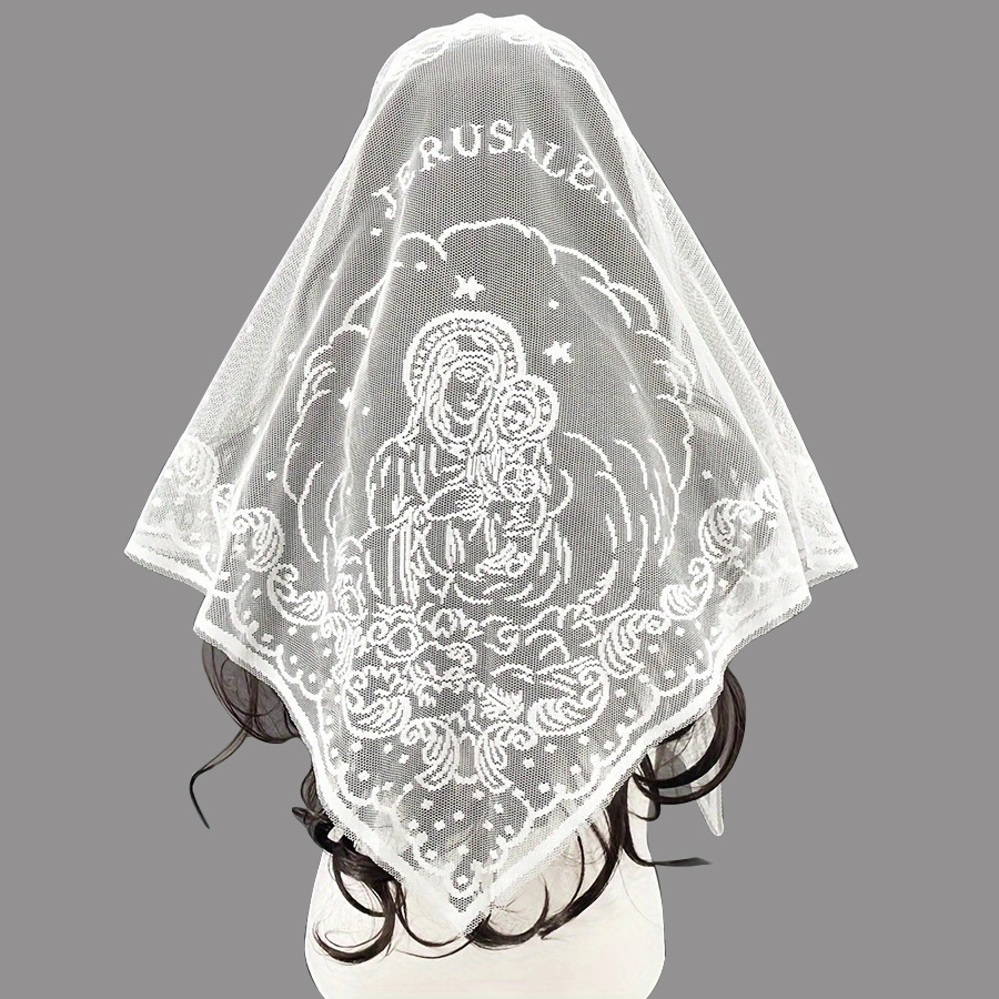国境を越えた新しい教会の祈りの白いベール聖母三角スカーフ刺繍入りスカーフ女性のエスニックスタイルのヒジャブ