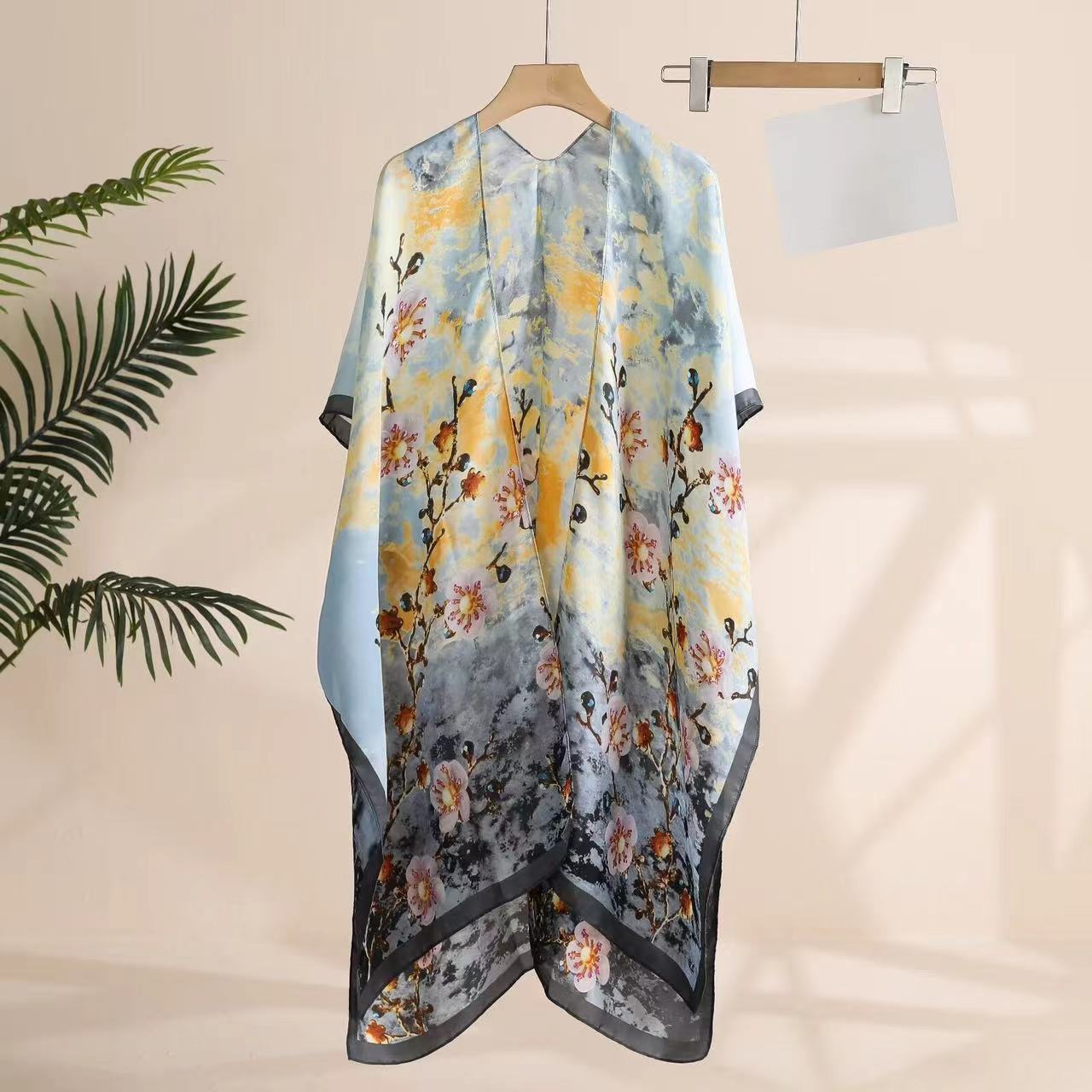 2024新型麗錦サテンオープンフォーク日焼け止めシルクタオルストール女性の外着気質高級感とスカートはマフラーを着ることができる