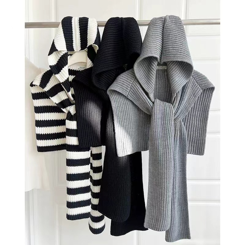 ニットの小さいショールの春の外はマフラーの両用のファッションのエアコンの首の肩の2025の新型のストライプの偽の襟の秋を掛けます。