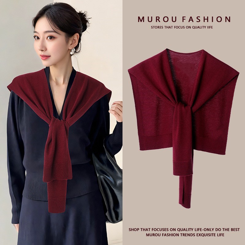 2024新型マフラー女性秋冬安可拉紅ニットウール三角ストールを含む首保護保温ベスト