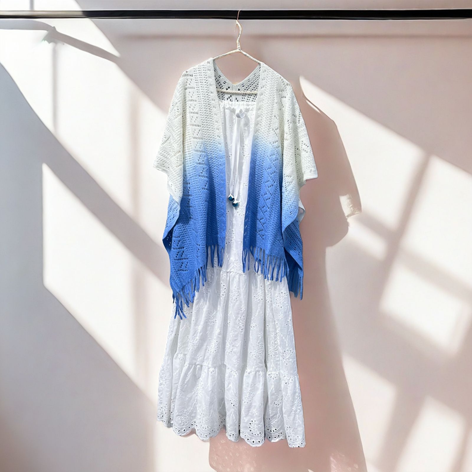 ショール・マント 夏用 白 多機能 日焼け止め スカートと合わせる リボン付き フェイクカラー クロスボーダー工場卸売