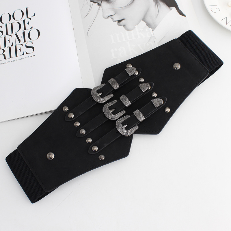 広いベルトの女性の針はワンピースの弾力性のpuの切れを掛けて腰を緩めて欧米の復古のファッションを密封します。