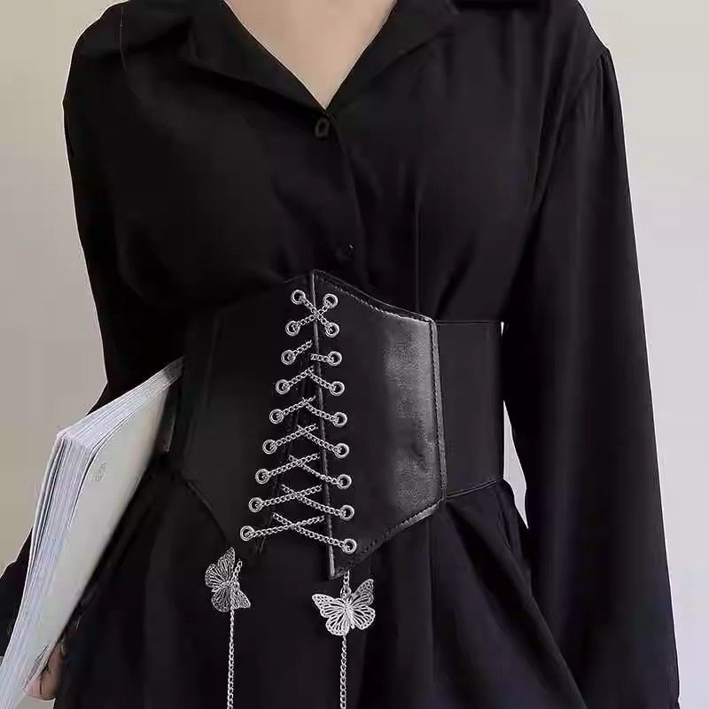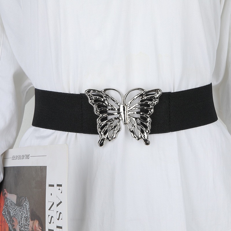 透かし彫りの蝶はベルトを飾ります。女性は腰を締めます。