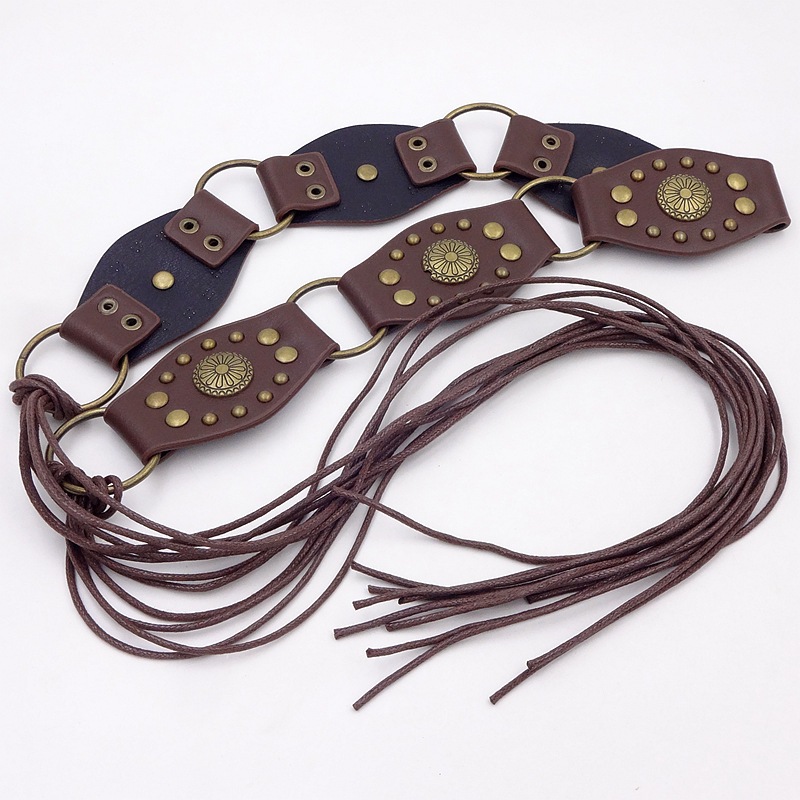 個性的な西部のカウボーイ風の金属の環はベルトの女性の復古のリベットのヴィンテージの装飾の広いベルトを掛けてコーヒーを飾ります。