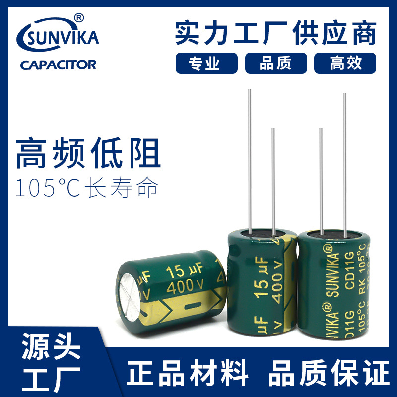 400v15ufアルミ電解コンデンサ8x14 8x16 10x13 10x17量量交渉高周波低抵抗緑金