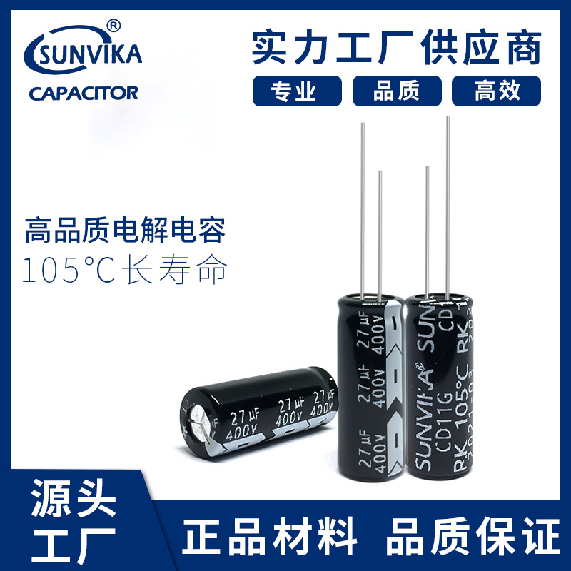 メーカー卸売りスポット400V27UF、27uf400v高品質電解コンデンサ8 * 18mm