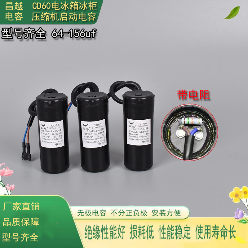 冷蔵庫冷凍庫起動コンデンサCD60冷凍庫圧縮機起動コンデンサ56uf64uf75uf80uf汎用タイプ