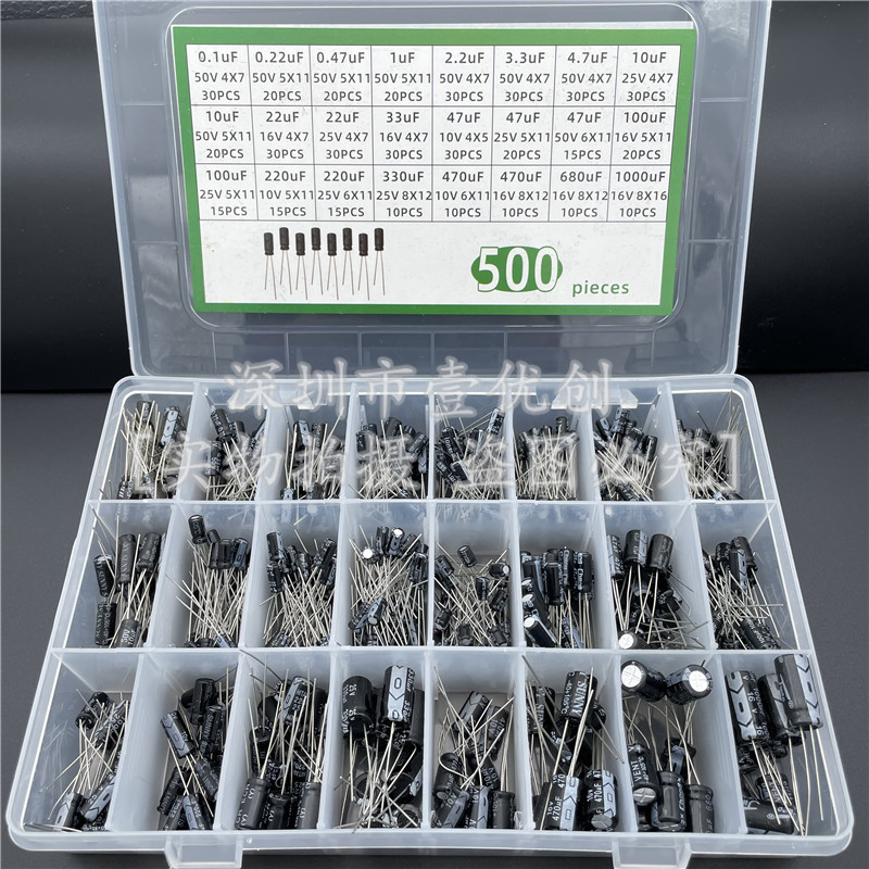 セットパッケージ郵便24種類仕様500個電解コンデンサ分類ボックスセット範囲0.1uf-1000uf