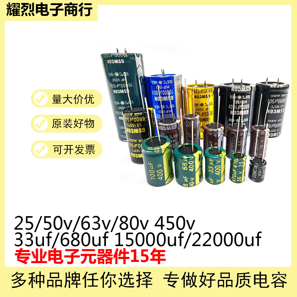 新品正規品25v63v400v450vインラインアルミ電解コンデンサー100uf/470uf/1000ufフィルター