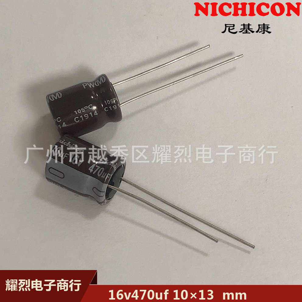16v470uf 10*13mmニキカンNICHICON高周波低抵抗105 ℃ インラインアルミ電解コンデンサ