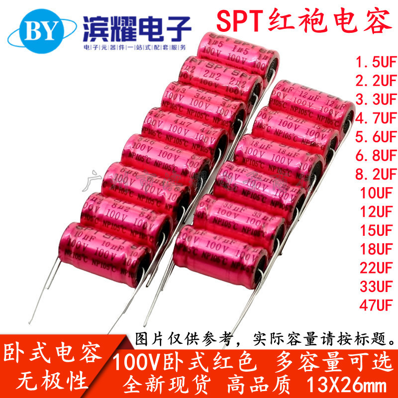 SPT純正品2.2/3.3/4.7/6.8/10/22/33/47UF100V軸方向無極NPアルミ電解コンデンサ