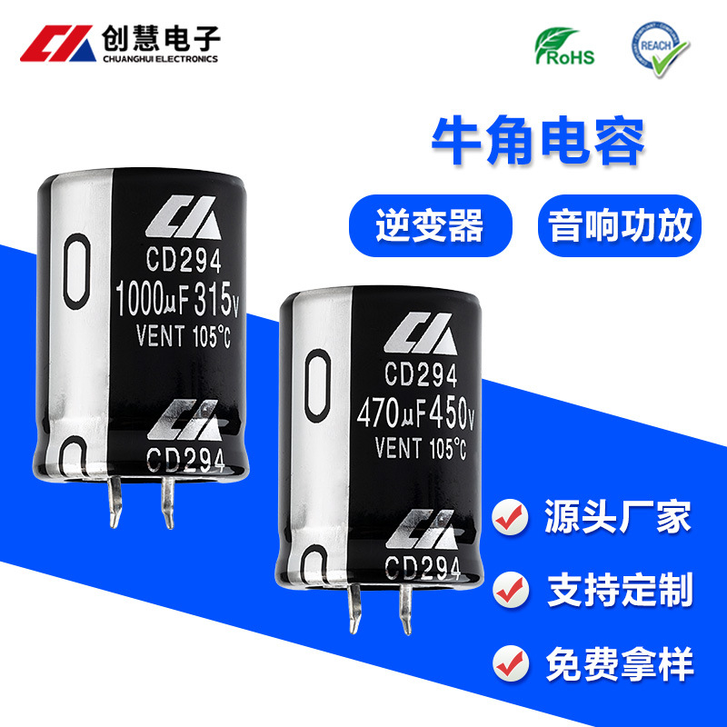 Chuanghui 電子ホーンアルミ電解コンデンサ、大型リップル耐性、大容量コンデンサ、インバーター、充電パイルコンデンサ