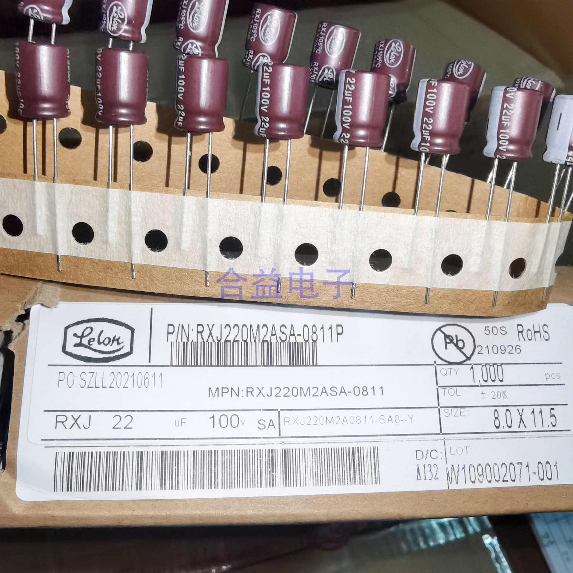 100v22uf 8 × 11原装台湾立隆編リード足付きストレートアルミ電解コンデンサ22uf100v