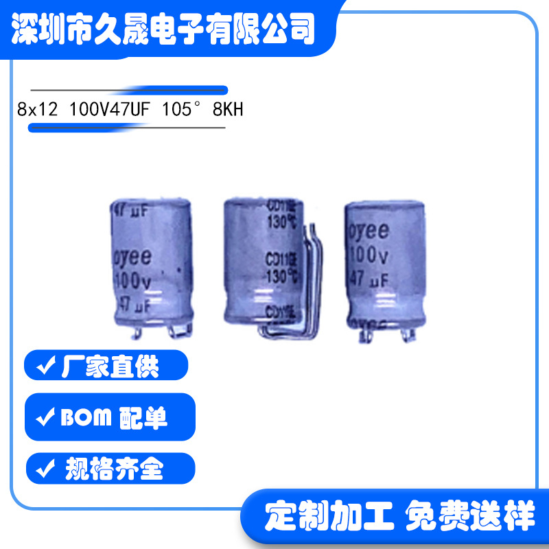 チップ付きT型8x12 100V47UF LED照明電源CD11GEチップ電解コンデンサ