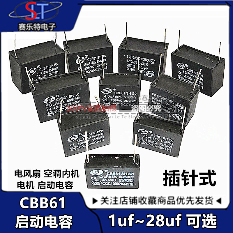 Cbb61ピン1uf/1.2/1.5/2/3/4/5/6uf 450vエアコンファン起动コンデンサピン