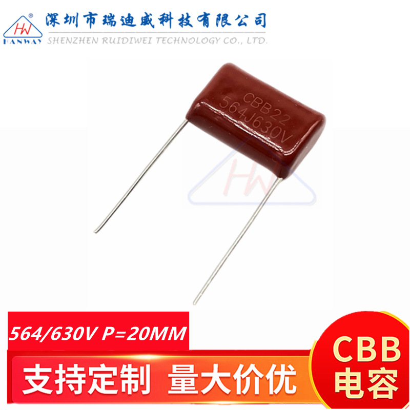 Cbbフィルムコンデンサーcbb22 564j630v 560nf0.56 uf 630v564jフットピッチp = 20mm
