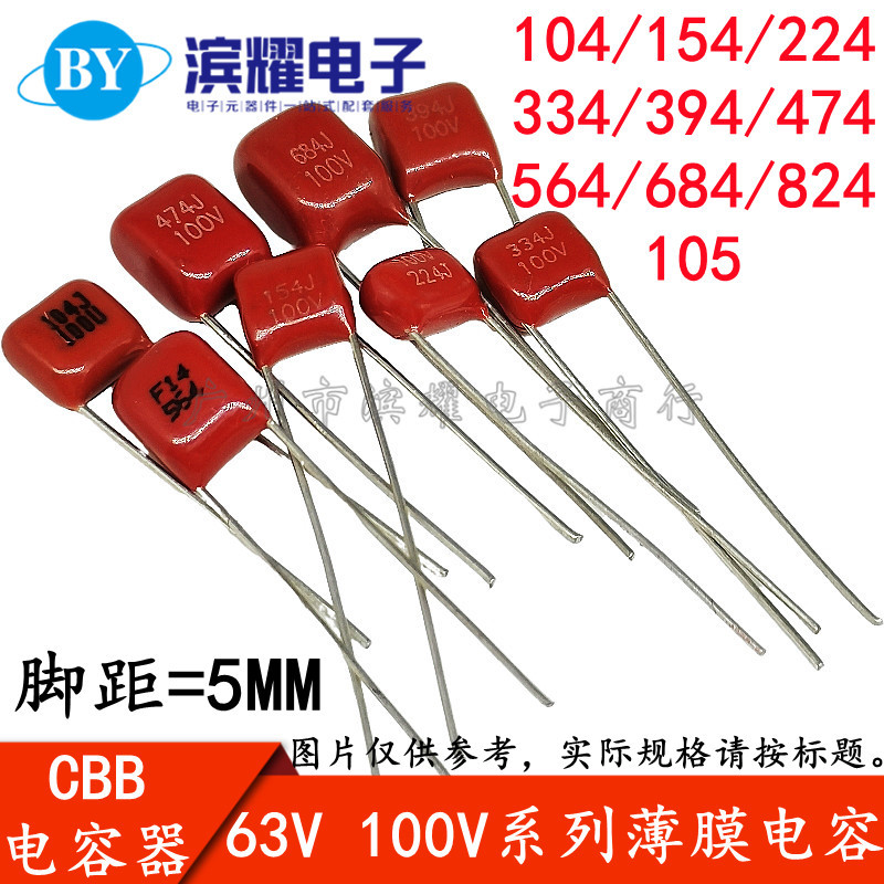 Cbbコンデンサ金属膜コンデンサ104j100v 63v104j 0.1uf薄膜コンデンサポリエステル薄膜コンデンサ