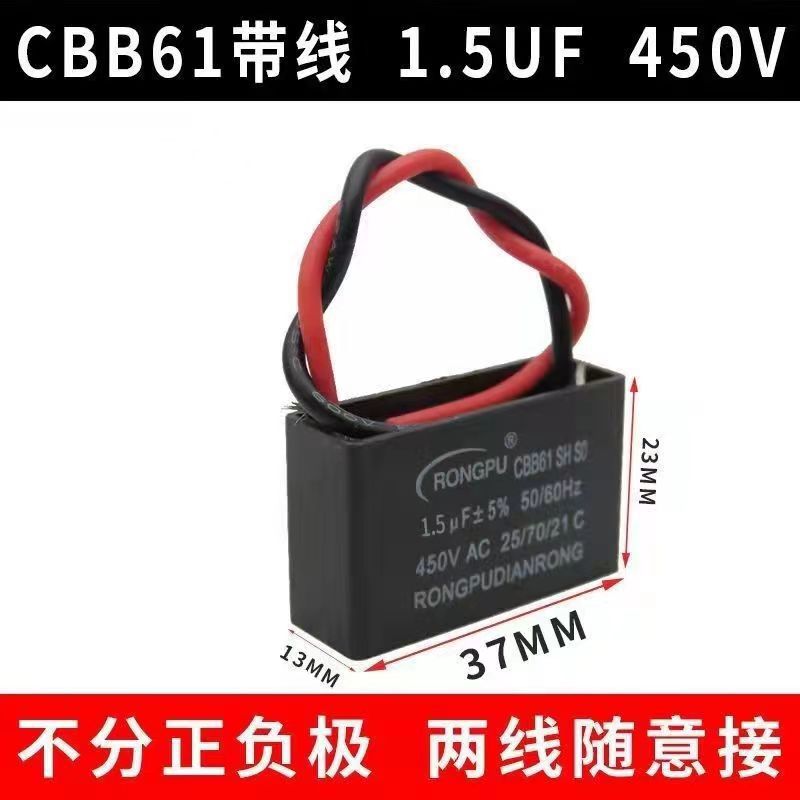 CBB61輸出型電動ファン始動コンデンサ、卓上扇風機モーター汎用1.2 1.5UF/2吊り下げ扇風機450v