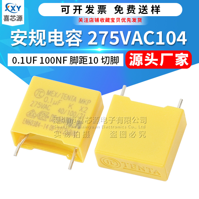 直挿安規コンデンサ104k/275v足距離10mm 275v104k安規高低圧コンデンサメーカー