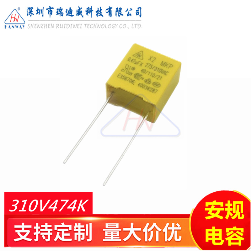 Hw安規コンデンサMKP-X2 474k310v 0.47uf耐ノイズコンデンサ310vac足距離p10mm