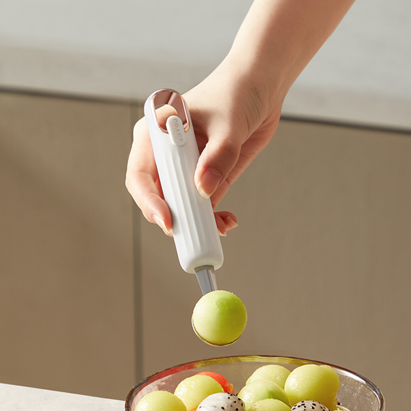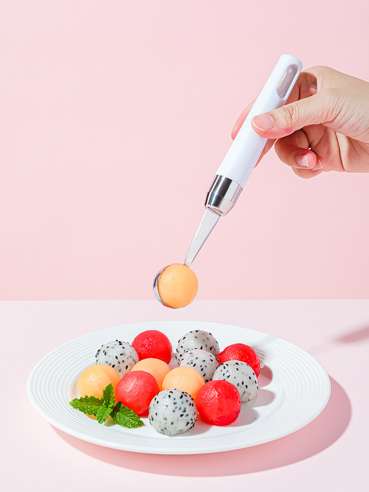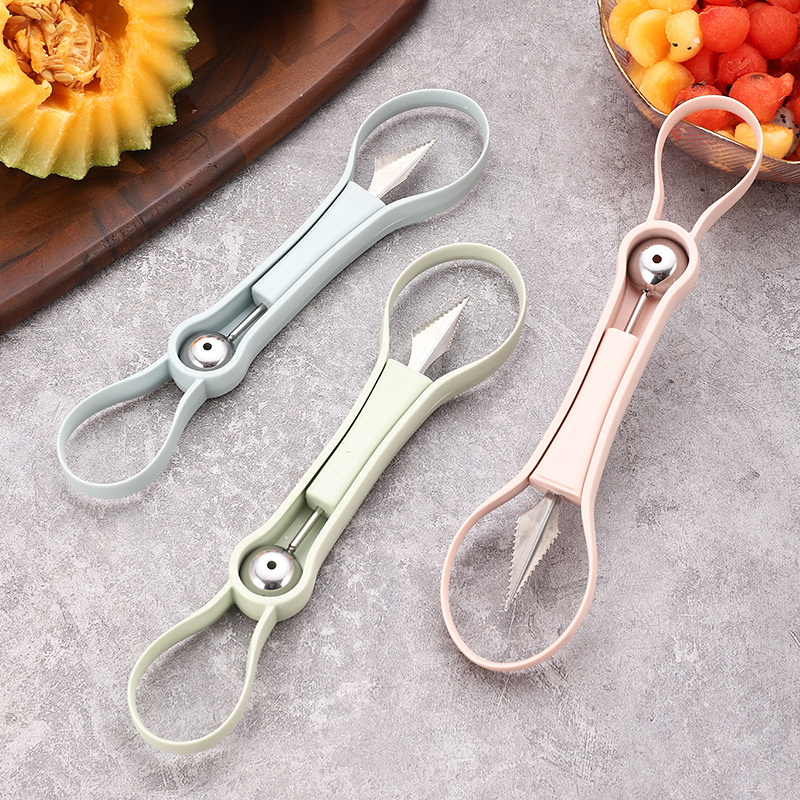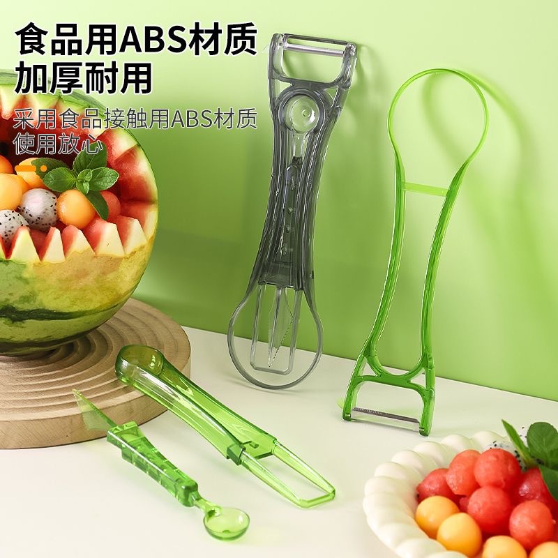 新しいスリーインワンフルーツボールスクレーパー、スイカボールスクレーパー、フルーツスクレーパー、皮むき器、フルーツツールセット