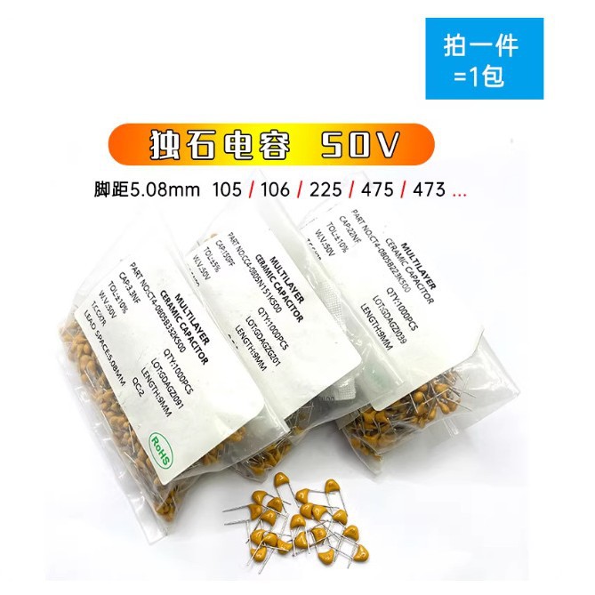 独石コンデンサー50v 472k足距離5.08mm 50v 472pf長足大型チップ