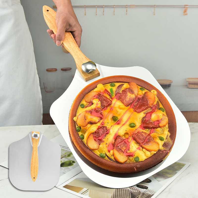 メーカー在庫あり Amazon ベストセラー ピザ アルミ スペード 取り外し可能なベーキング ピザ スペード 転送ツール ゴム製木製ハンドル