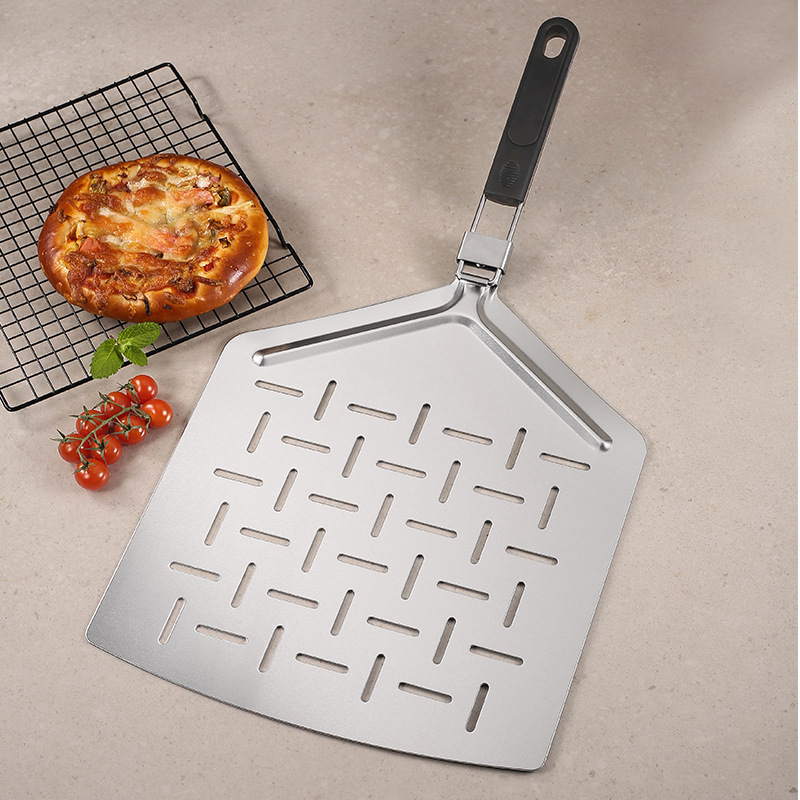 ベーキングツール折りたたみアルミ角穴ピザシャベルケーキ転送シャベルプラスチックハンドル除去ピザシャベルメーカー卸売