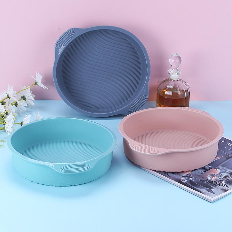 国境を越えた新製品食品グレードのシリコーンベーキングパンケーキ型電子レンジベーキングパンオーブンエアフライヤー専用ボウル