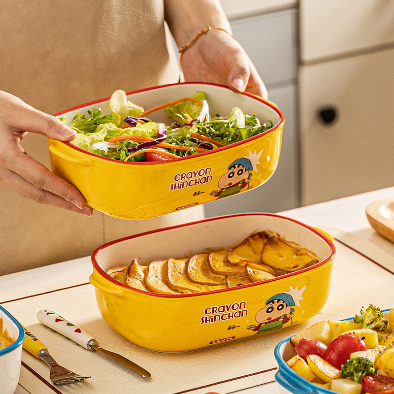 モダン主婦クレヨン小新連名双耳焼き皿電子レンジオーブン専用器陶磁器焼き皿卸売り