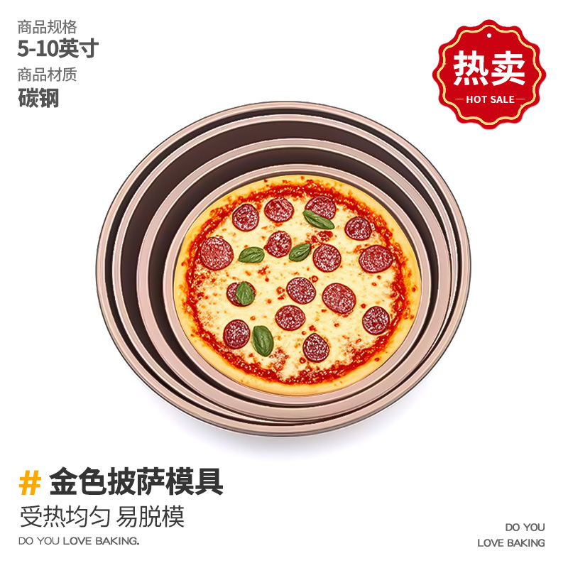 現物円形炭素鋼無粘ピザ皿焼き皿6インチ8インチ10インチpizza皿家庭用焼きケーキ焼き皿