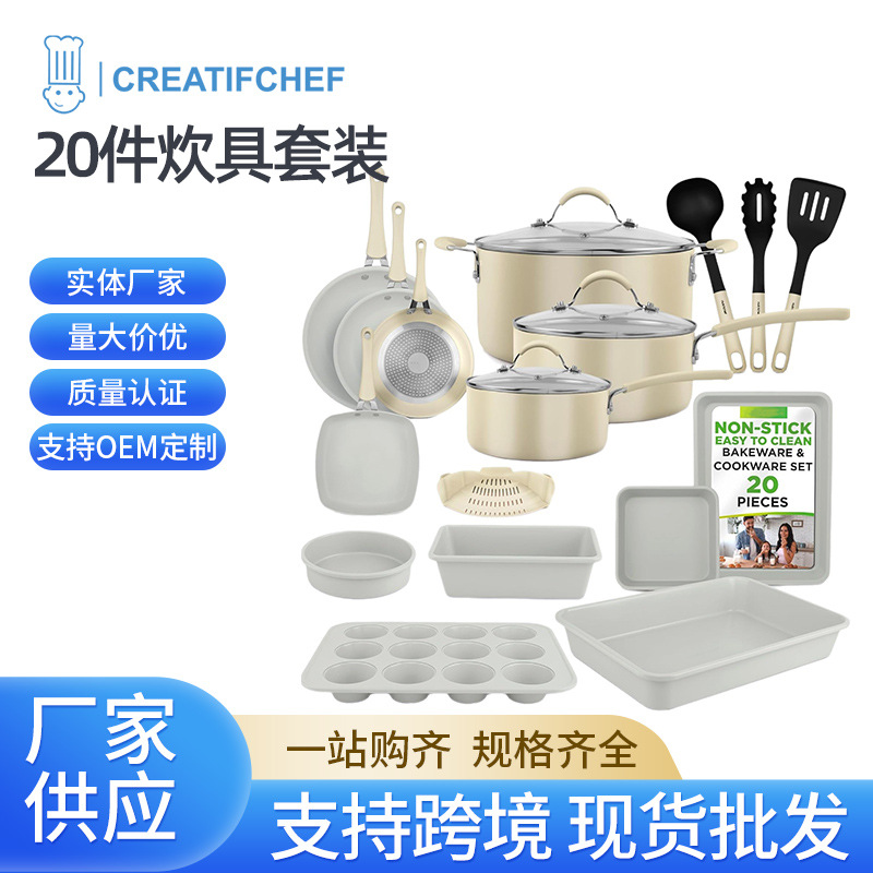 20 個ホワイトカーボンスチールノンスティック調理器具セットフライパンクッキングポットベーキングパンマフィンパンピザ調理キッチン家庭用