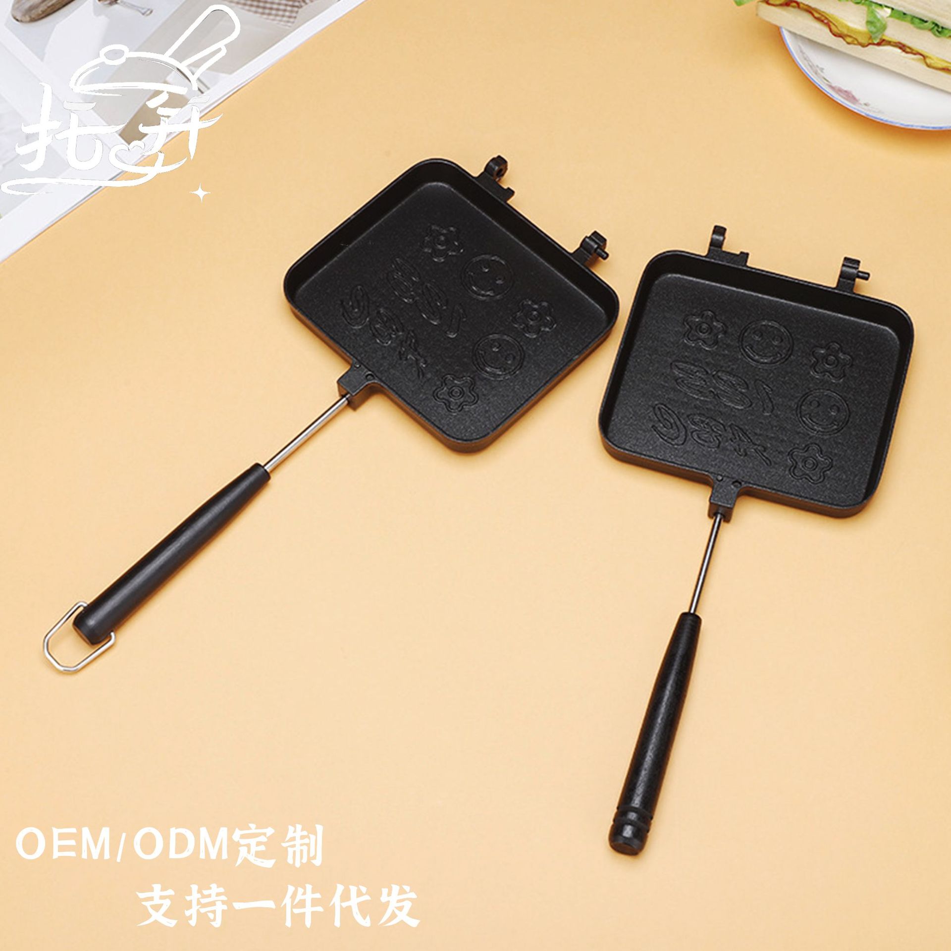 取り外し可能で洗いやすい熱プレスサンドイッチ焼き型、縁がしっかりした両面フライパン、トースト、卵焼き、パン焼き、多機能
