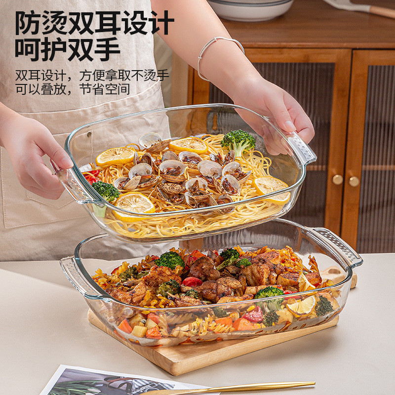 長方形ガラスベーキングトレイベーキング耐熱電子レンジ家庭用魚皿高ホウ素ガラス焼き飯トレイフルーツトレイ