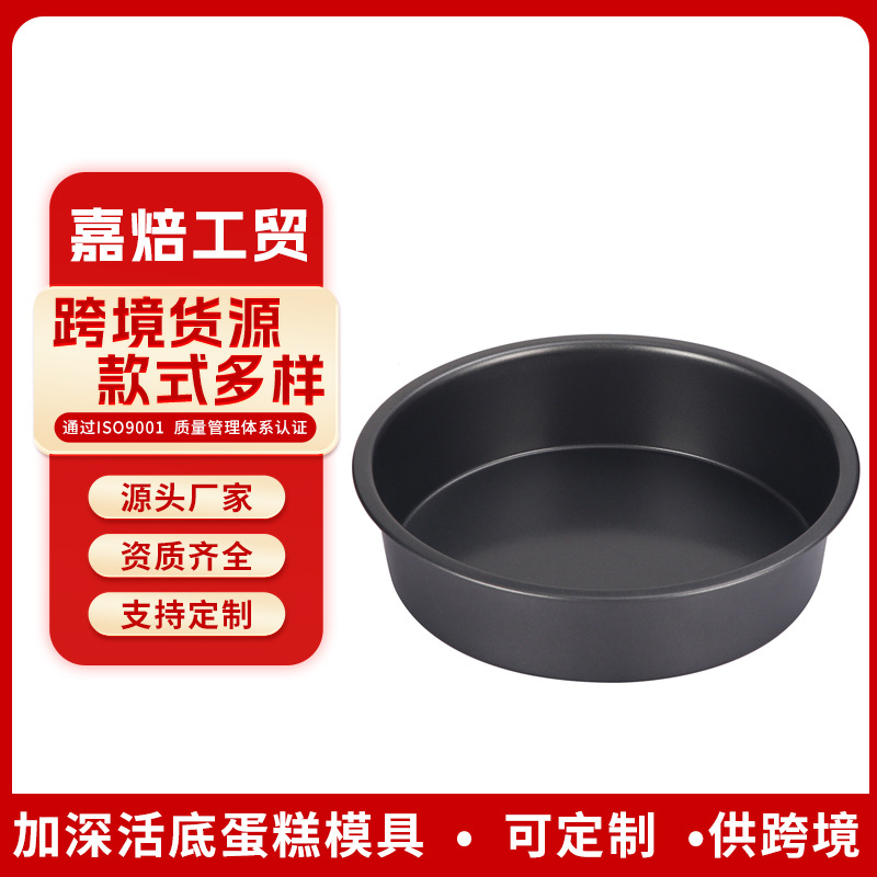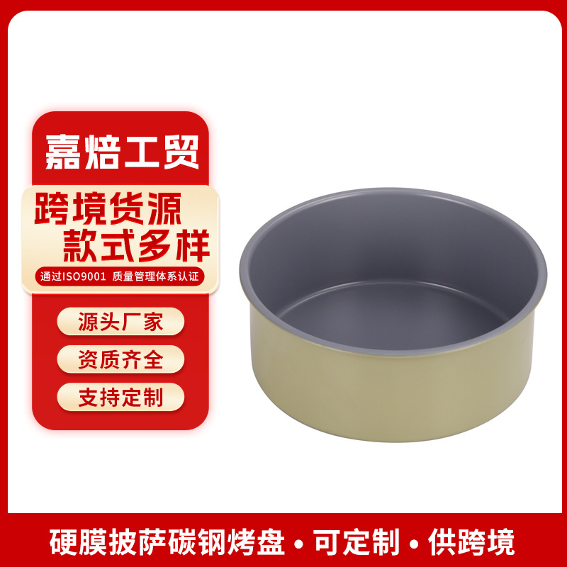 クロスボーダー深型ラウンドピザパン家庭用ノンスティックケーキベーキング用品ライブボトムハードフィルムピザ炭素鋼ベーキングパン