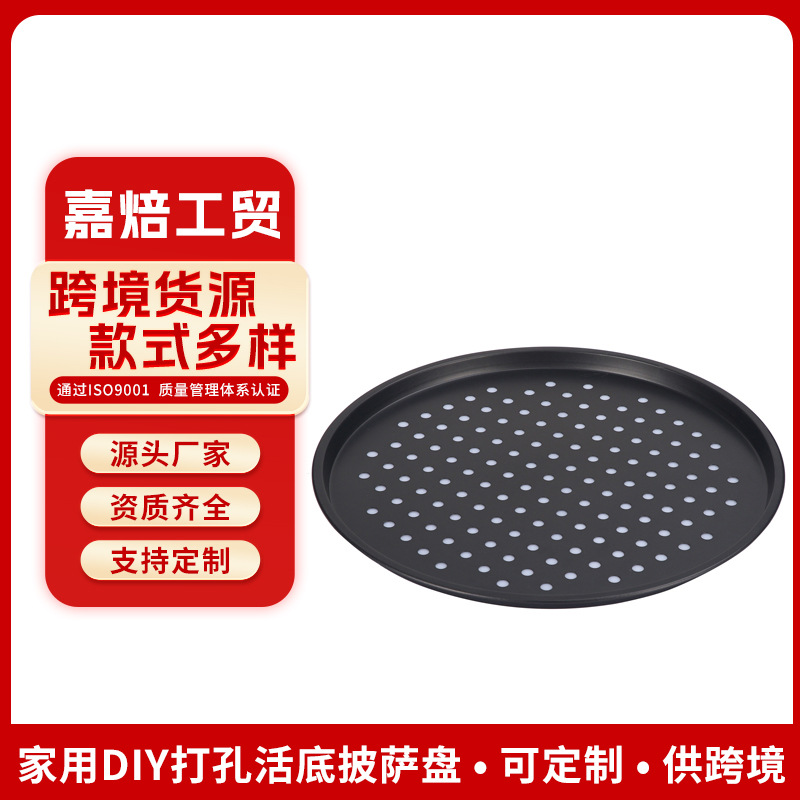 国境を越えた売れ筋の炭素鋼ノンスティックピザパンラウンド家庭用エアフライヤーベーキングパン厚く高温耐性ベーキングモールド