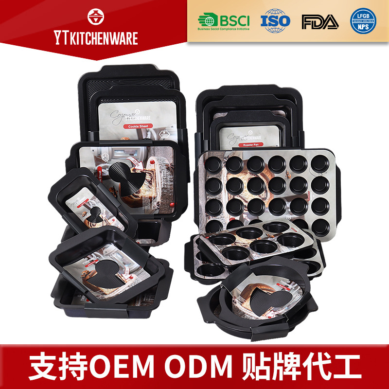 ノンスティック 10 ピースベーキングパンセット炭素鋼ベーキングパンセットシリコンハンドル付きターキーパンキッチンオーブンセット