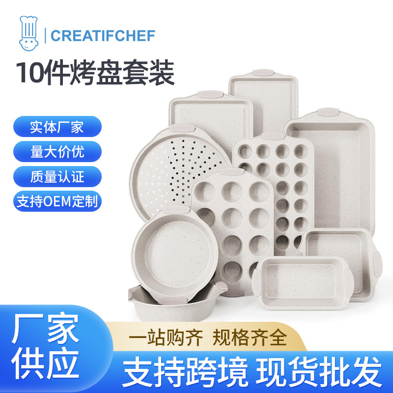 10個セット クリーム色 ノンスティック 積み重ね可能なベーキングパンセット 簡単に取り外せるベーキングセット ケーキ パン ピザ 家庭用
